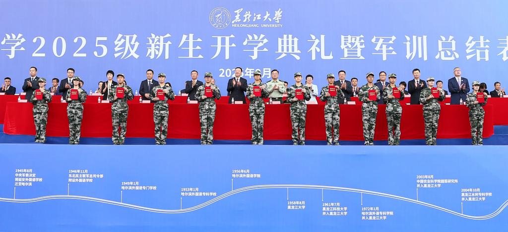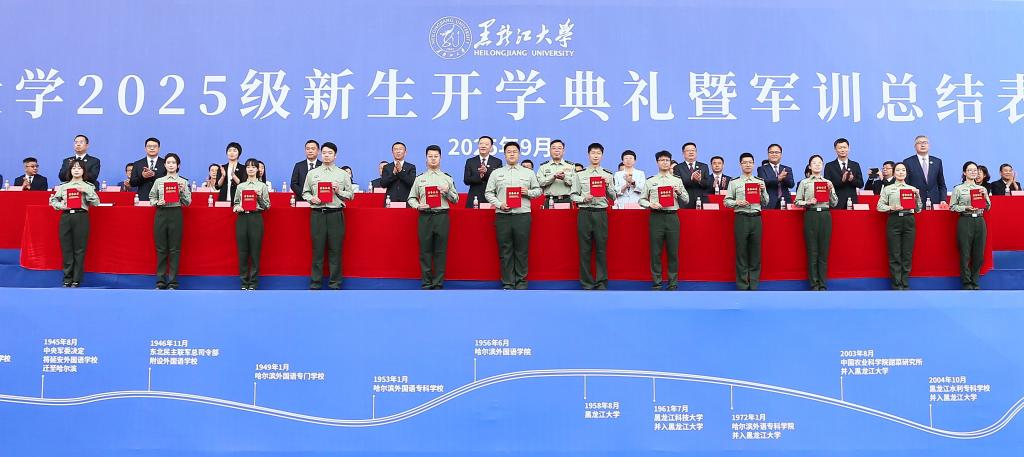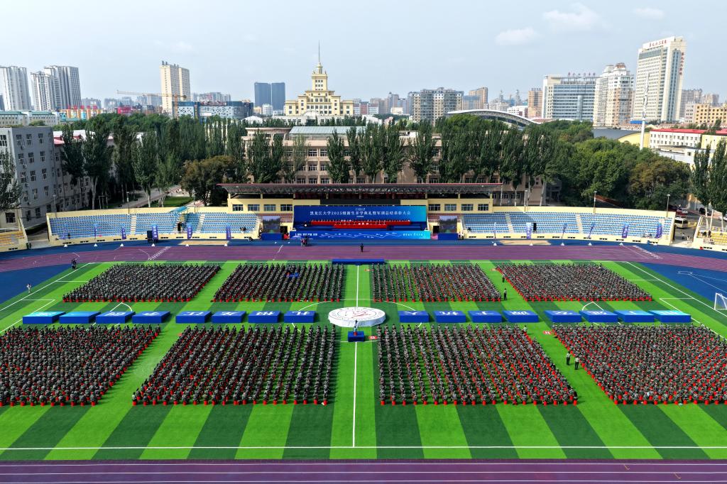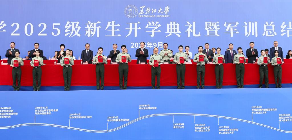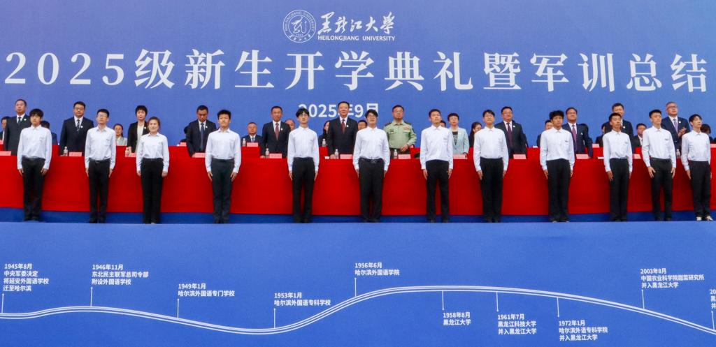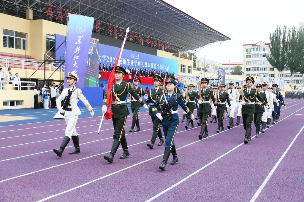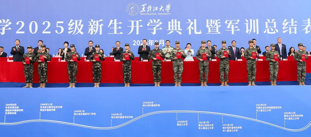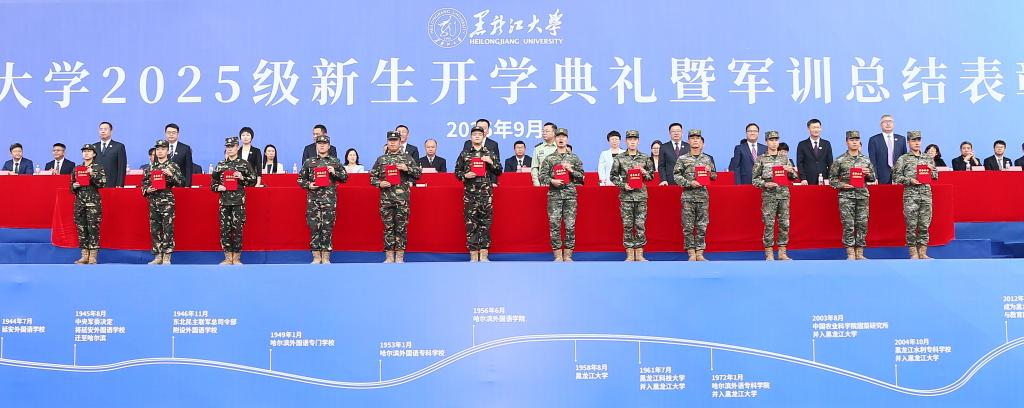 秋高气爽,硕果飘香。9月12日上午,我校在2号田径运动场举行2025级新生开学典礼暨军训总结表彰大会。校友代表1979级化学系校友、中国工程院院士程杰成,武警哈尔滨支队大校政治委员齐明宇,校领导迟宝旭、王敬波、三朗扎西、李君明、刘凤影、井立强、崔本强、许辉、孙剑、陈维厚以及学校各职能部门负责人、各学院领导、全体辅导员、全体2025级新生参加典礼。校党委副书记刘凤影主持活动。