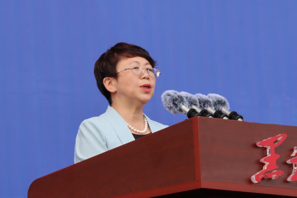 校长王敬波在活动上讲话。她代表全体师生员工对2025级新生的到来表示热烈欢迎。她围绕大学生成长与时代责任这一话题,向同学们提出了四点建议:有理想,志存高远,终能境界宏阔;善学习,水滴石穿,自在积淀深厚;敢创新,独辟蹊径,方见别样洞天;勤修身,行有所止,终得气象万千。王敬波表示,希望同学们潜心探寻真理之路,用心体悟黑大情怀,在龙江沃土中淬炼成长,于时代星河里绽放光芒。学校将会做同学们求知向学的坚强后盾、锤炼品格的精神家园、眺望世界的广阔窗口,让黑大岁月成为同学们生命中最蓬勃、最深刻、最无悔的篇章!