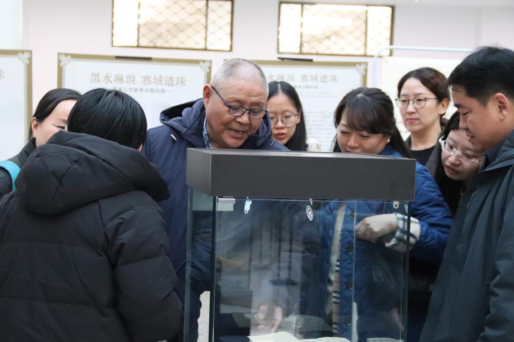 专题讲座后,陈先行一行来到黑龙江大学图书馆二楼参加古籍展览与体验活动,深入了解中华优秀传统古籍文化。