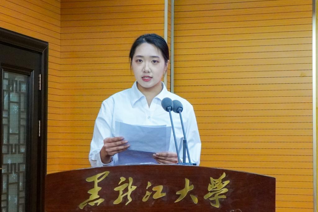 经济与工商管理学院学生许奕代表学院的全体师生欢迎国际经贸专业新生加入黑大。她表示,黑龙江大学始终坚持开放包容的办学理念,经济与工商学院拥有深厚的学术底蕴与完善的育人体系。她希望新同学们珍惜大学时光,扎实学习专业知识,积极交流互鉴,期盼中外学子携手同行,在黑大书写青春篇章。