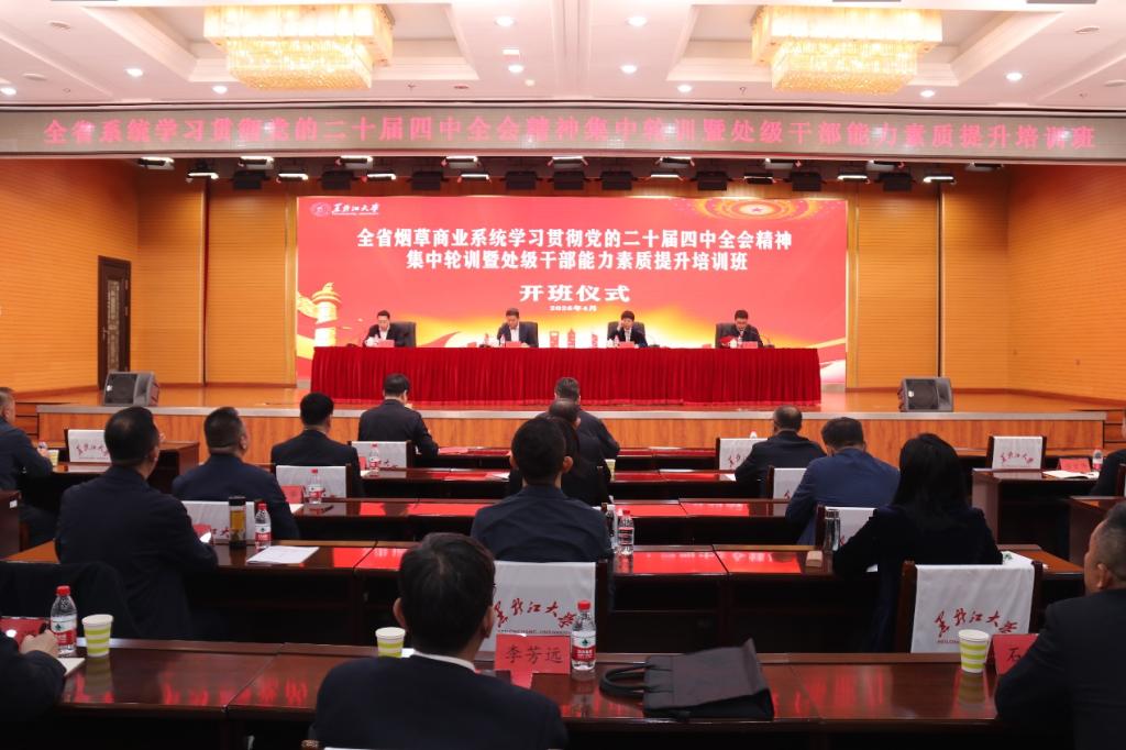 4月14日下午,全省烟草商业系统学习贯彻党的二十届四中全会精神暨处级干部能力素质提升培训班(第二期)在我校正式开班。黑龙江省烟草专卖局(公司)党组书记、局长、总经理周武庆,我校校长王敬波,黑龙江省烟草专卖局(公司)党组成员、副总经理兼哈尔滨市烟草专卖局(公司)党组书记、局长、经理黄继坤,党组成员、副总经理李殿民,党组成员、纪检组组长刘建军,副校长崔本强出席开班仪式。刘建军主持开班仪式。