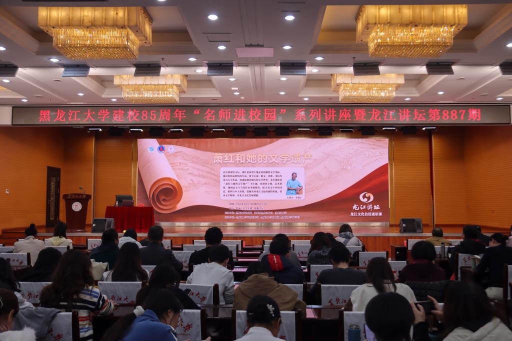 4月23日下午,由黑龙江省社科联、新华社黑龙江分社、黑龙江大学主办,党委宣传部、图书馆、文学院承办的黑龙江大学建校85周年“名师进校园”系列讲座暨龙江讲坛第887期在主楼一楼报告厅举行。中国现代文学研究会会员、黑龙江省萧红研究会副会长章海宁担任主讲人,校党委副书记刘凤影主持讲座。