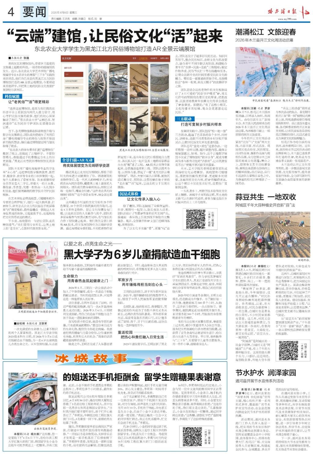 [哈尔滨日报]以爱之名,点亮生命之光——黑大学子为6岁儿童捐献造血干细胞