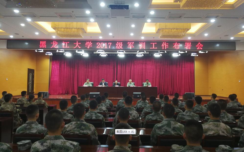 为圆满完成2017级新生军训工作任务,充分做好参训教官和辅导员的军训动员工作,黑龙江大学2017年新生军训工作布置会于2017年8月30日下午在主楼一楼报告厅举行。军训师参谋长、校武装部部长、国防教育学院院长宋晓安、军训师政治部主任、党委学工部部长、学生处处长丁宏、军训师政治部副主任、国防教育学院党总支书记金鹏、军训师政治部副主任、校团委副书记周成刚出席会议,各学院新生辅导员老师和全体教官参加会议。