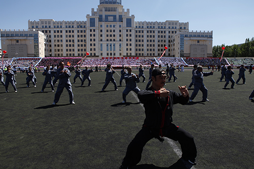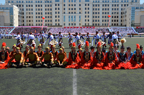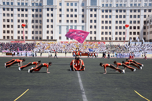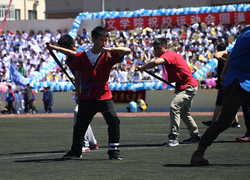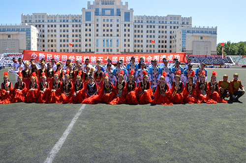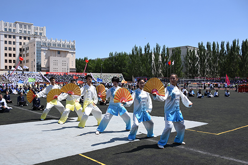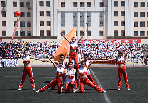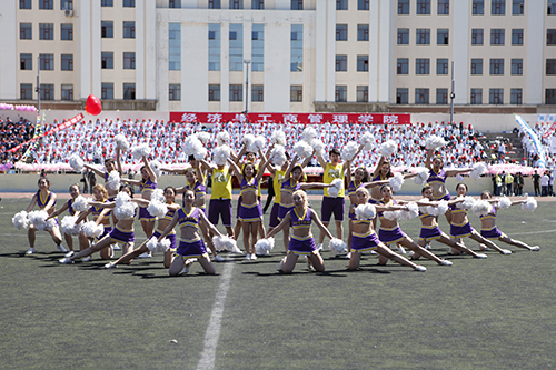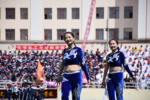 在一阵欢快的民族音乐旋律中,少数民族同学身着民族的服装为大家带来舞蹈。维吾尔族的舞蹈轻盈活泼,哈萨克族的舞蹈热情奔放,藏族的舞蹈大气潇洒,这些民族舞蹈为运动会带来独特的风情,让大家体会到我校各民族团结友爱的文化交流氛围。