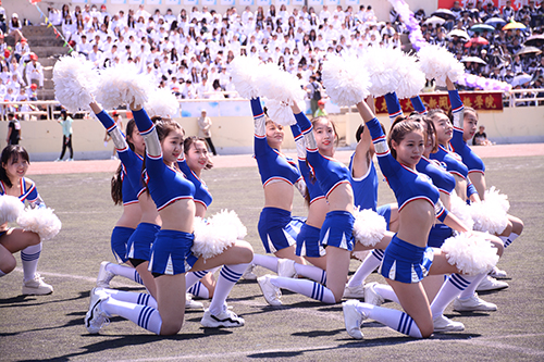 在啦啦操比赛中取得优秀成绩的西语学院、艺术学院和经济与工商管理学院啦啦操队依次进行了啦啦操表演。在曾经每天几个小时坚持不懈的训练下,每个啦啦操队的表现力与配合程度都在会场上发挥到极致,观众席爆发了雷鸣般的掌声与喝彩声,现场气氛十分热烈。