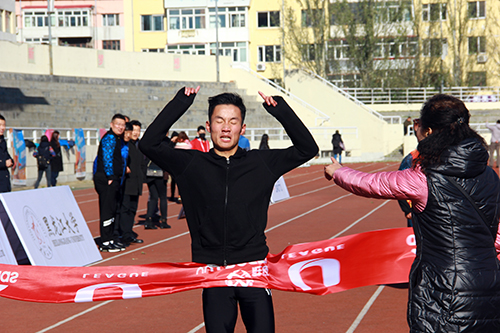 零下二摄氏度的体育场,人头攒动。在比赛之前,在领队的带领下,全体运动员摇晃头部,伸展四肢。一声枪响,精英组男子组选手冲出起跑线。他们绕田径场跑道3/4圈后,从一号门出发沿着学文路、翔健路直行到科苑路左转,经过校医院左转路过汇文广场回到百米终点。在终点等候的老师欢呼起来:“回来了,回来了。”2014级艺术学院的彭祥宾以6分02秒的成绩获得了第一名。随后,女子精英组和大众组相继出发。