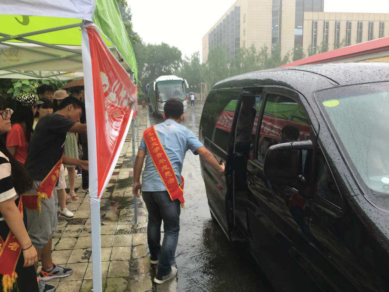 中午的阳光并不灿烂,带着点闷热的躁动,突然而至的大雨,阻挡不了临行的脚步,更阻挡不了爱心送站志愿者们的服务热情。我校青年志愿者协会的志愿者,帮助毕业生搬放行李,组织乘车,并随车到车站帮助搬运行李。“当年,我们来的时候学长学姐们接我,今天,学长学姐走了,我们怎么能不送一送。”2015级一位不愿透露姓名的志愿者如是说。帮学长把行李搬上车的一瞬间,他头上低落着汗水,眼里闪着泪花。