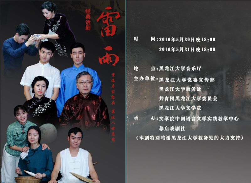 、31日晚6时在音乐厅同广大师生见面,《雷雨》剧组全体演职人员期待与大家一同感受经典的魅力。(文字:杜寒三)