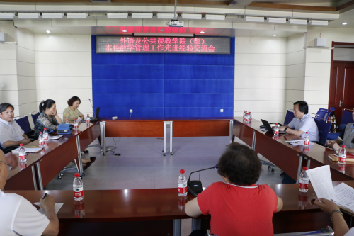 6月16日下午,在学校主楼226会议室召开了外语及公共课教学院(部)本科教学管理工作先进经验交流会(第三场)。交流会由学校外语及公共课教学院(部)评管专家组组长石敏教授主持,学校首席督学曹重光教授、外语及公共课教学院(部)评管专家组全体专家、8个外语及公共课教学院(部)分管教学工作领导、教育教学评估中心全体工作人员参加交流会。