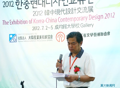 由我校刘福臣教授策划主持,韩国大韩产业美术家协会和黑龙江省文联主办的“2012韩中现代设计展”于2012年7月2日至7月7日在韩国首尔隆重举行。展览共展出了中韩133位设计家最新创作的作品,我校刘福臣教授、艺术学院青年教师关雪仑、王秀君、田占峰、赵玉国、刘庆治作品入选。应韩国大韩产业美术家协会的邀请,我校刘福臣教授,青年教师刘庆治等中国设计家7人赴韩国参加了展览开幕式。韩国大韩产业美术家协会理事长崔浩天先生致开幕词,国际著名设计家、原韩国大韩产业美术家协会理事长、韩国成均馆大学教授白金男先生、中国包装协会设计委员会全国委员、黑龙江大学刘福臣教授先后致辞,韩国大韩产业美术家协会理事长崔浩天先生、原韩国大韩产业美术家协会理事长、国际著名设计艺术家韩国成均馆大学教授白金男先生,韩国京畿设计协会会长、韩国龙仁大学教授姜炳墩先生、原韩国大韩产业美术家协会理事长、韩国韩国成均馆大学教授郑申恭先生、中国包装协会设计委员会全国委员、黑龙江大学刘福臣教授先等为开幕式剪彩,韩国著名的设计家、艺术院校教授、企业界等百余人参加了展览开幕式。