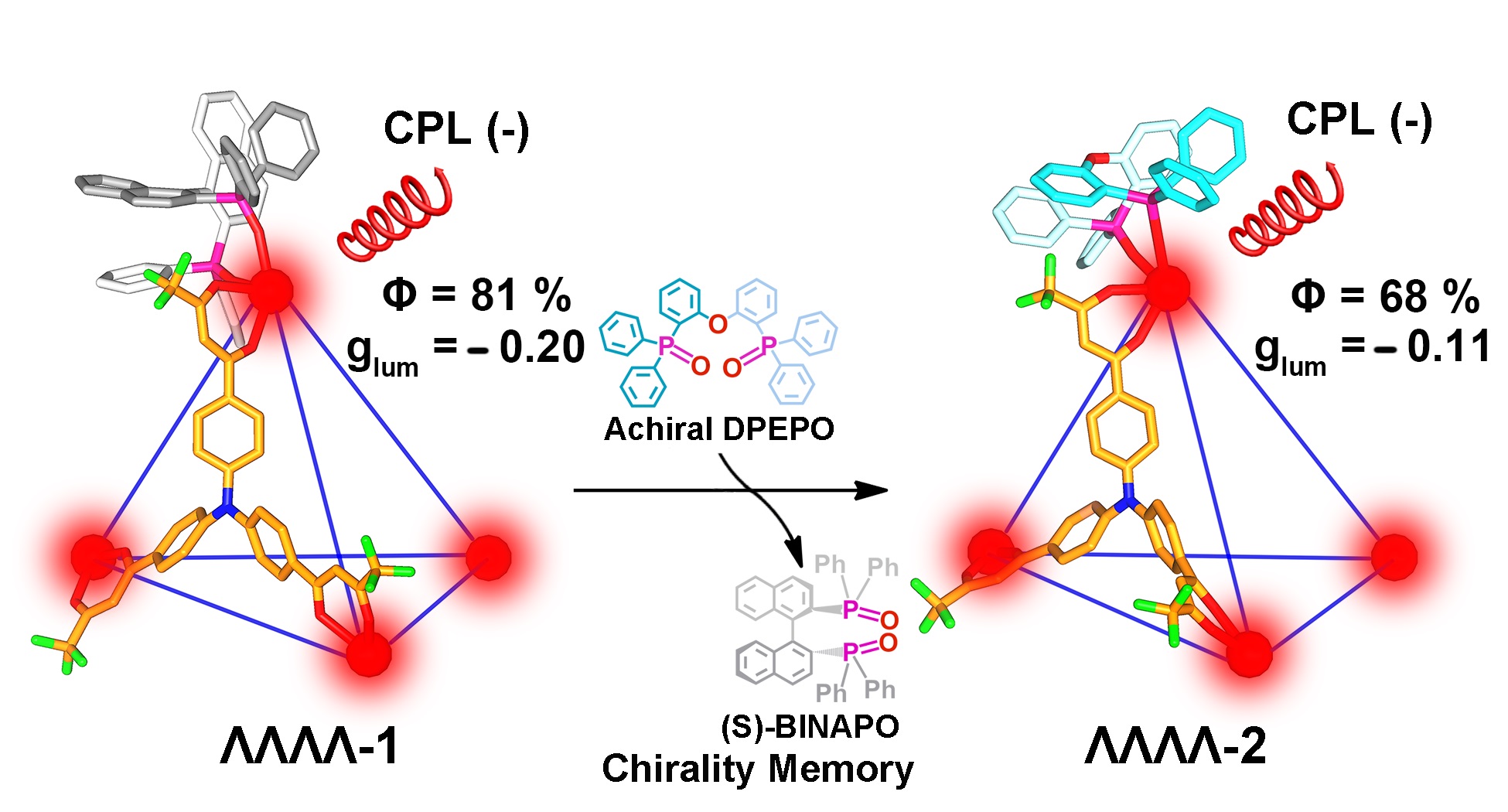 图1.手性稀土四面体笼的手性记忆效应和圆偏振发光